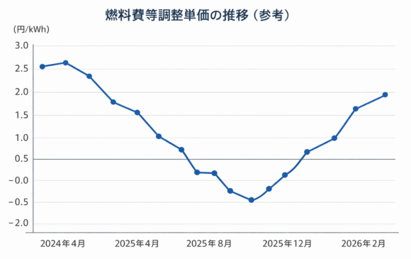 これらは毎年、あるいは毎月見直されます。つまり、私たちがコントロールできない部分で電気代は上下しているのです。